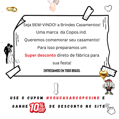A Copos.ind é a especialista em brindes personalizados para tornar seu casamento ainda mais mágico e inesquecível. Há mais de 15 anos no mercado, oferecemos uma variedade incrível de produtos para todos os gostos e estilos, com a qualidade e o atendimento impecável que você merece.
